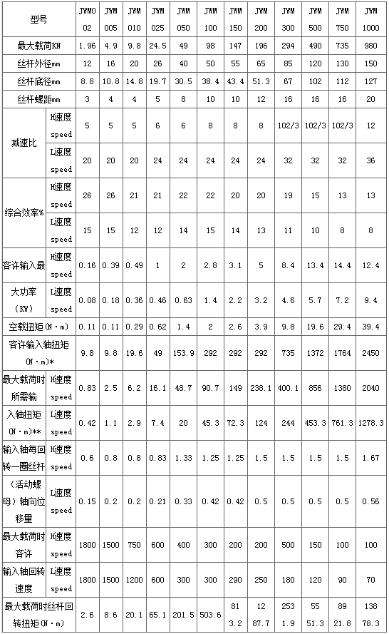 JWM型(梯形絲桿型)適用于低速、低頻率的場合,