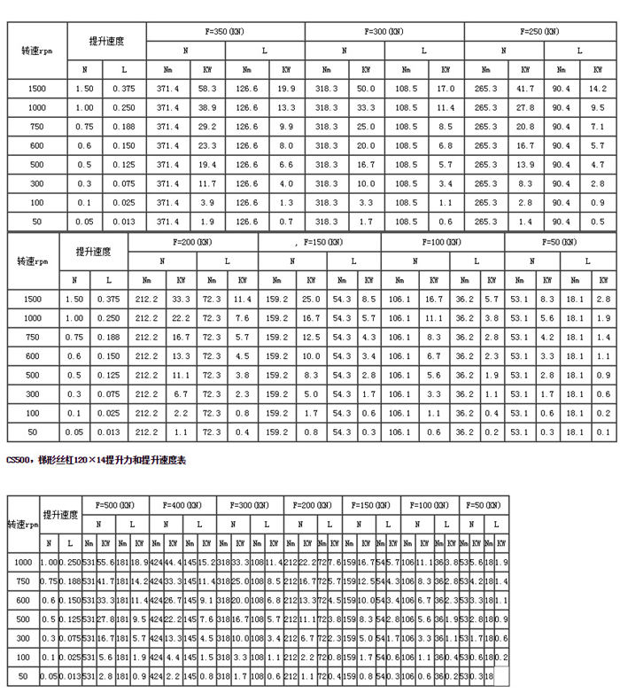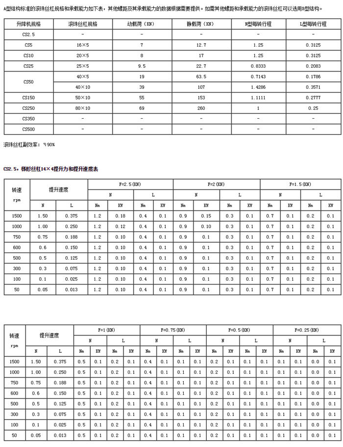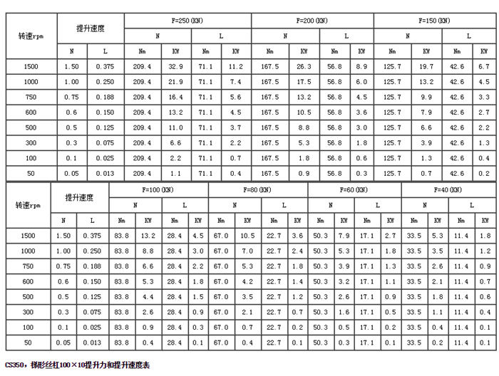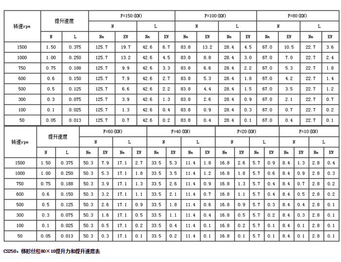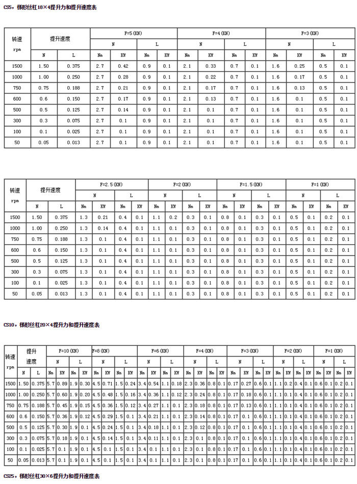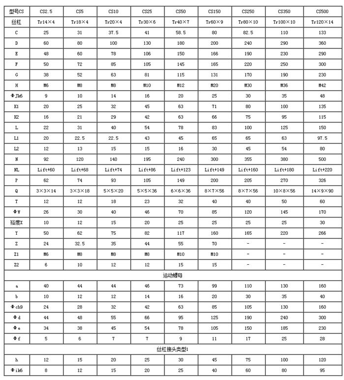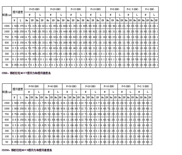 CS方形蝸輪絲杠升降機(jī)主要性能參數(shù)表